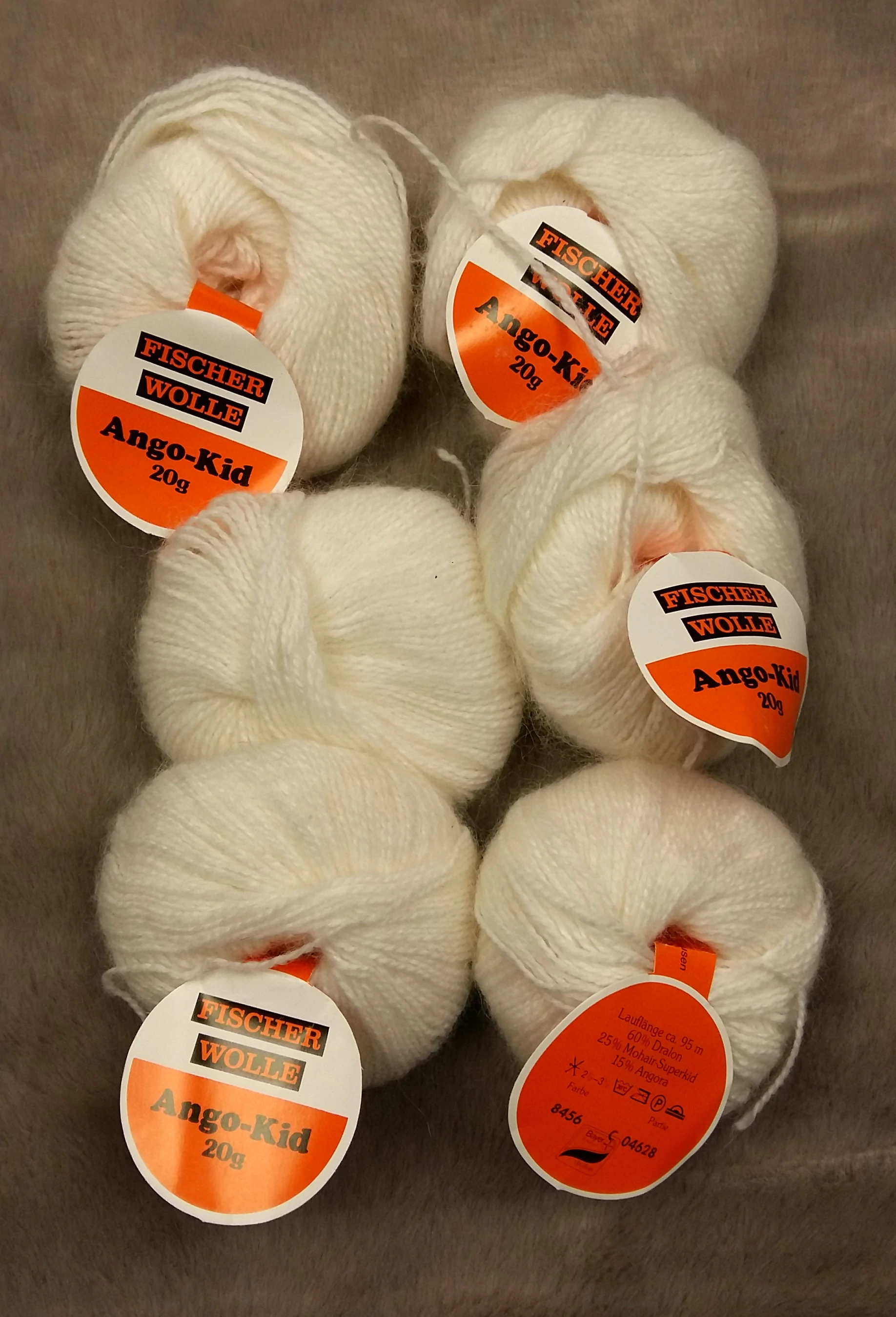 25% superkid mohair, 15% angora, 60% dralon, 20gr/95m, 130gr összesen